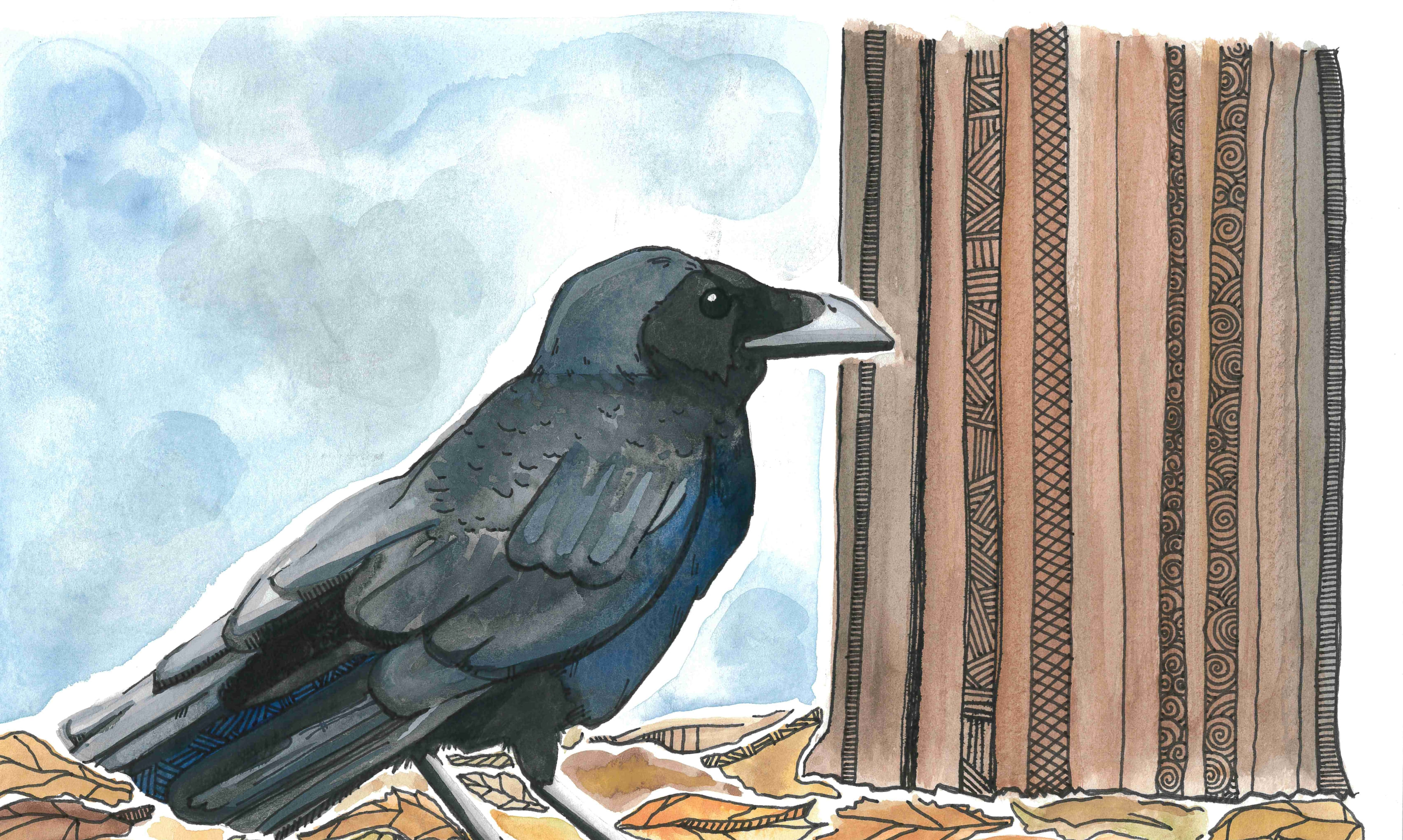 Corvid, 2020, Watercolor & Ink