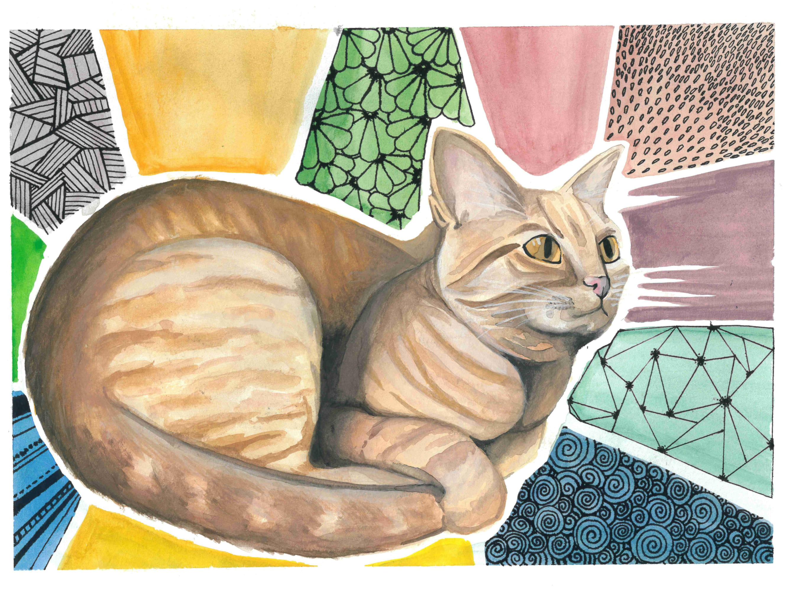 Cafe Cat, 2019, Watercolor