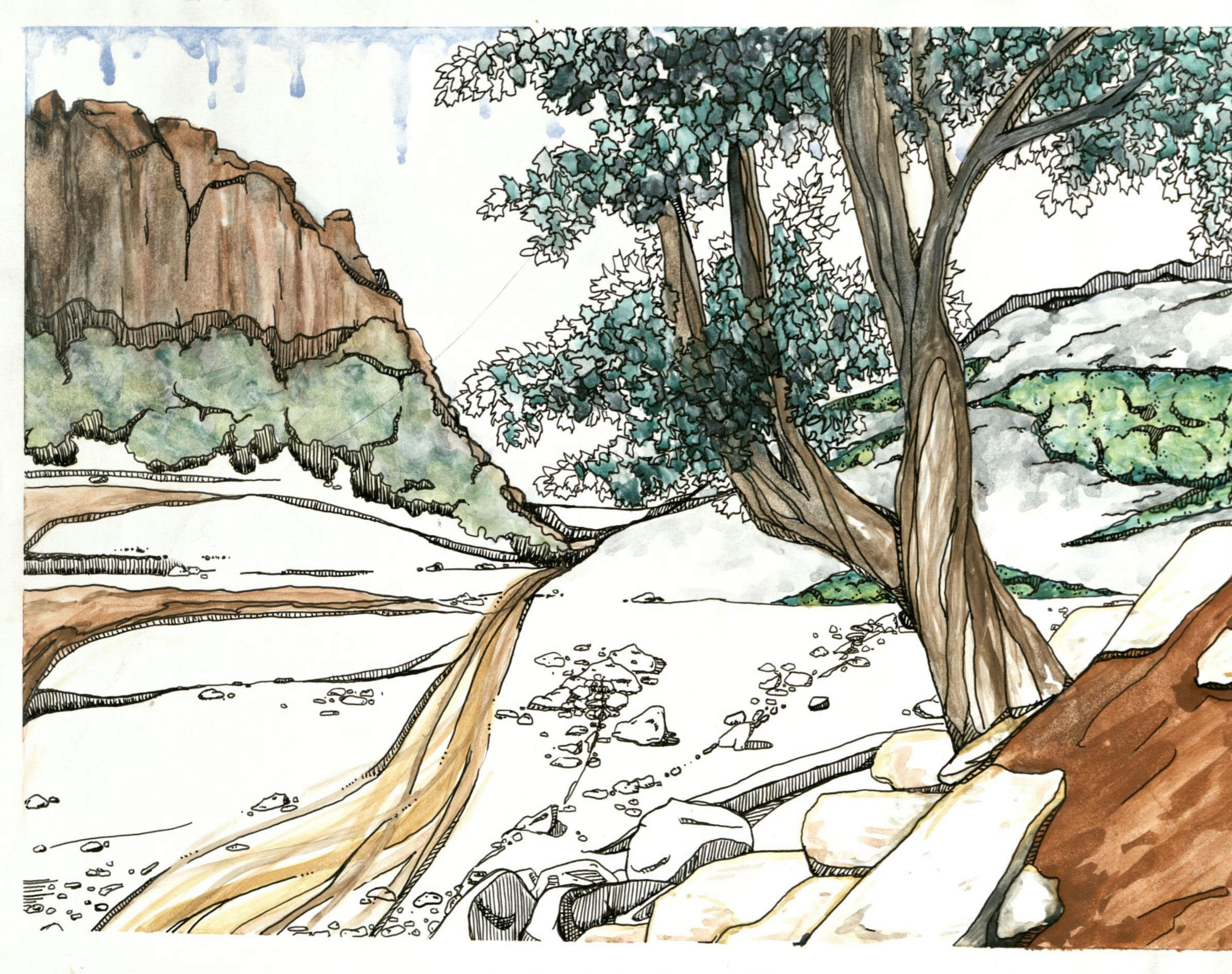 The Middle Atlas, 2018, Watercolor & Ink