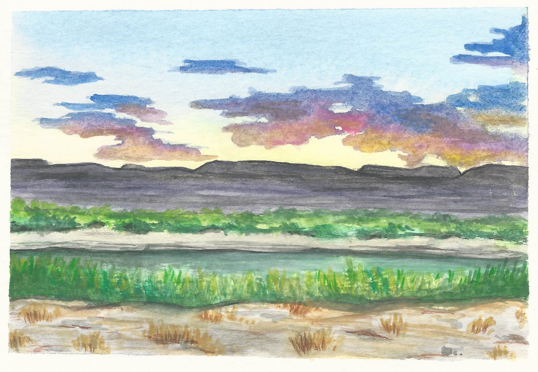 Big Bend Sunset, 2020, Watercolor