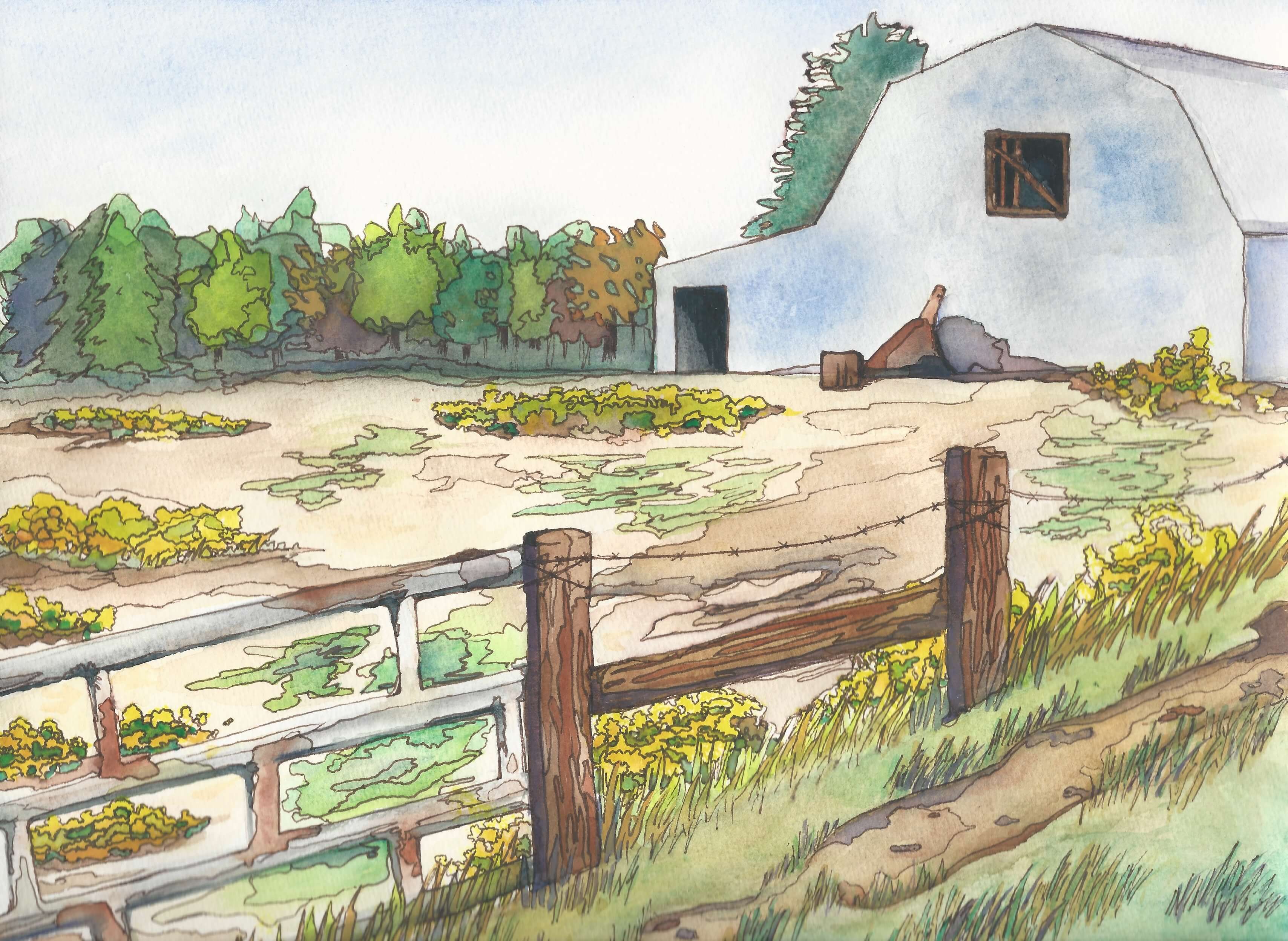 Grandma’s Barn, 2014, Watercolor and Ink